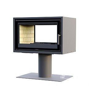 Печь-камин ТУННЕЛЬНЫЙ (СКВОЗНОЙ) С ПРЯМЫМИ СТЕКЛАМИ И БОКОВЫМ ОТКРЫВАНИЕМ ДВЕРИ Т 8050