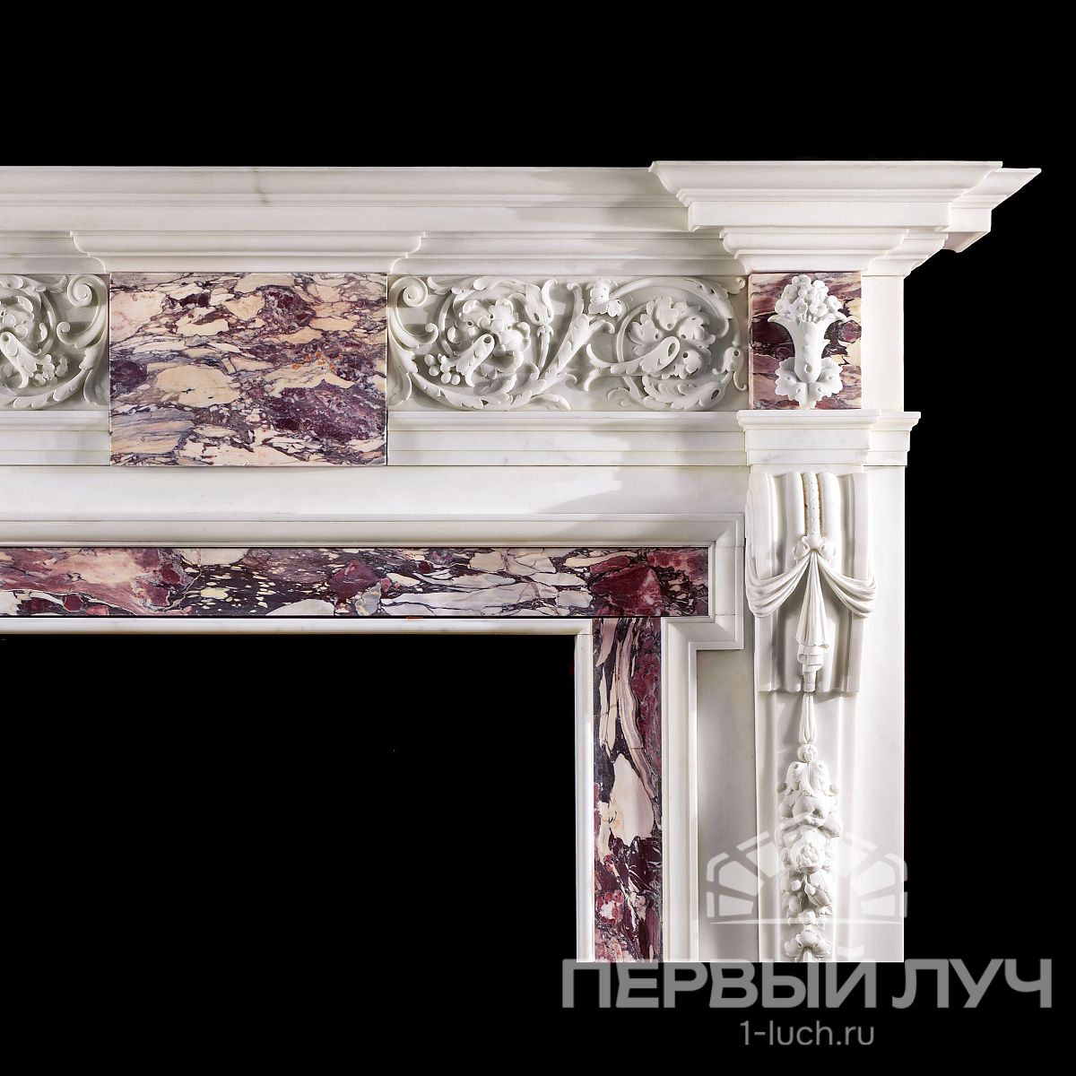 Портал для камина из белого и фиолетового мрамора в стиле Уильяма Кента