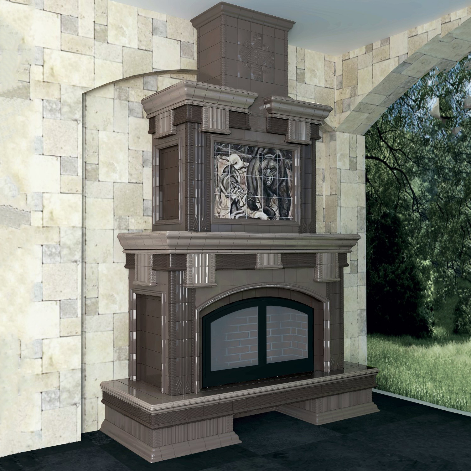 Подготовить проект облицовки камина, находится на веранде, уличное исполнение керамики.