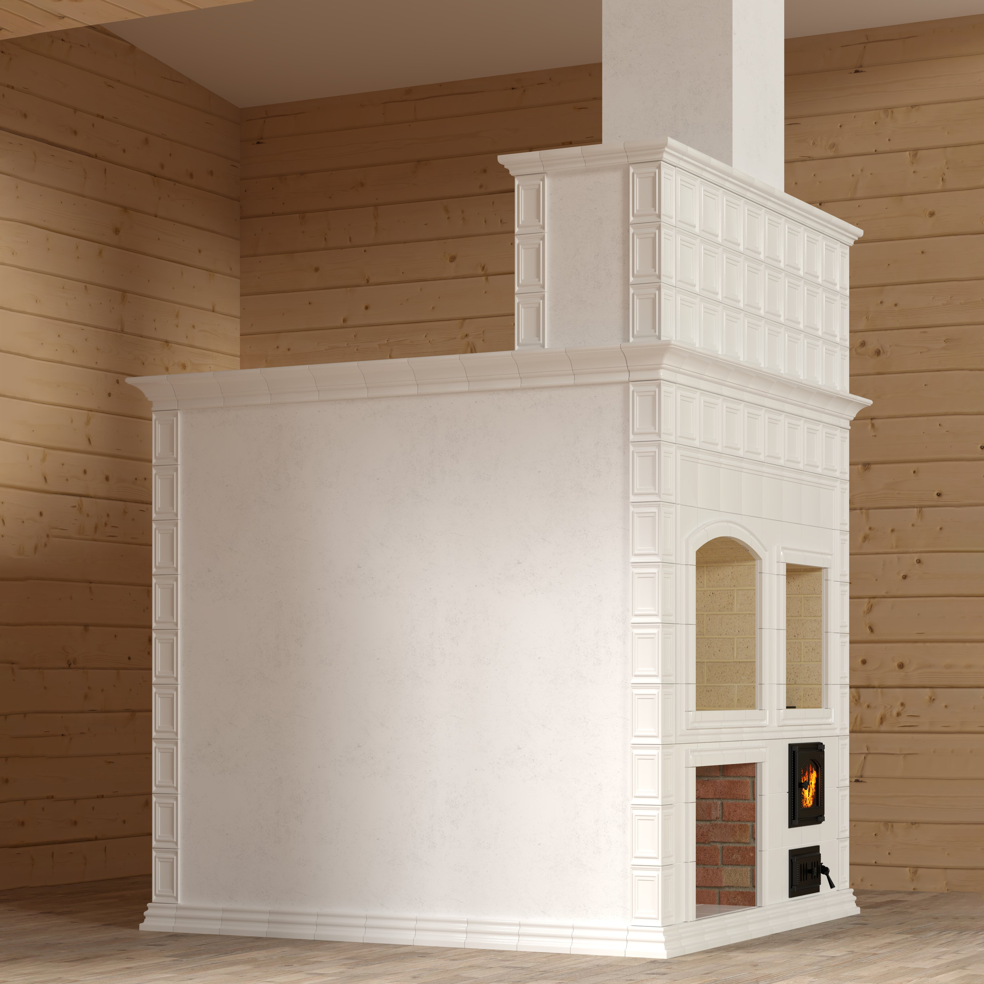 Подготовить проект частичной облицовки русской печи в белом цвете.