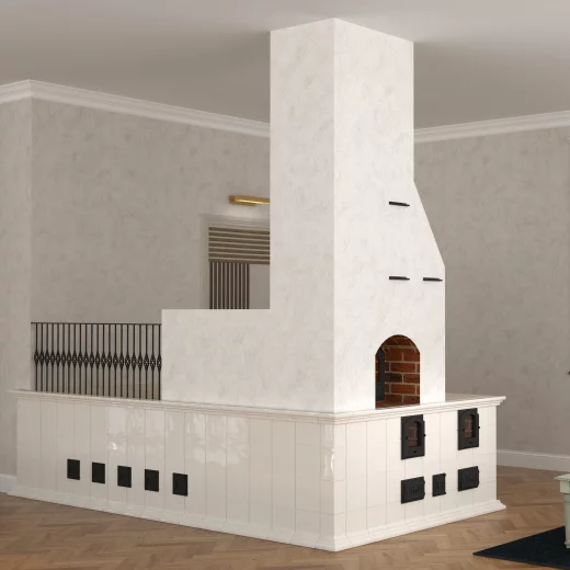 Подготовить проект частичной облицовки русской печи в белом цвете.