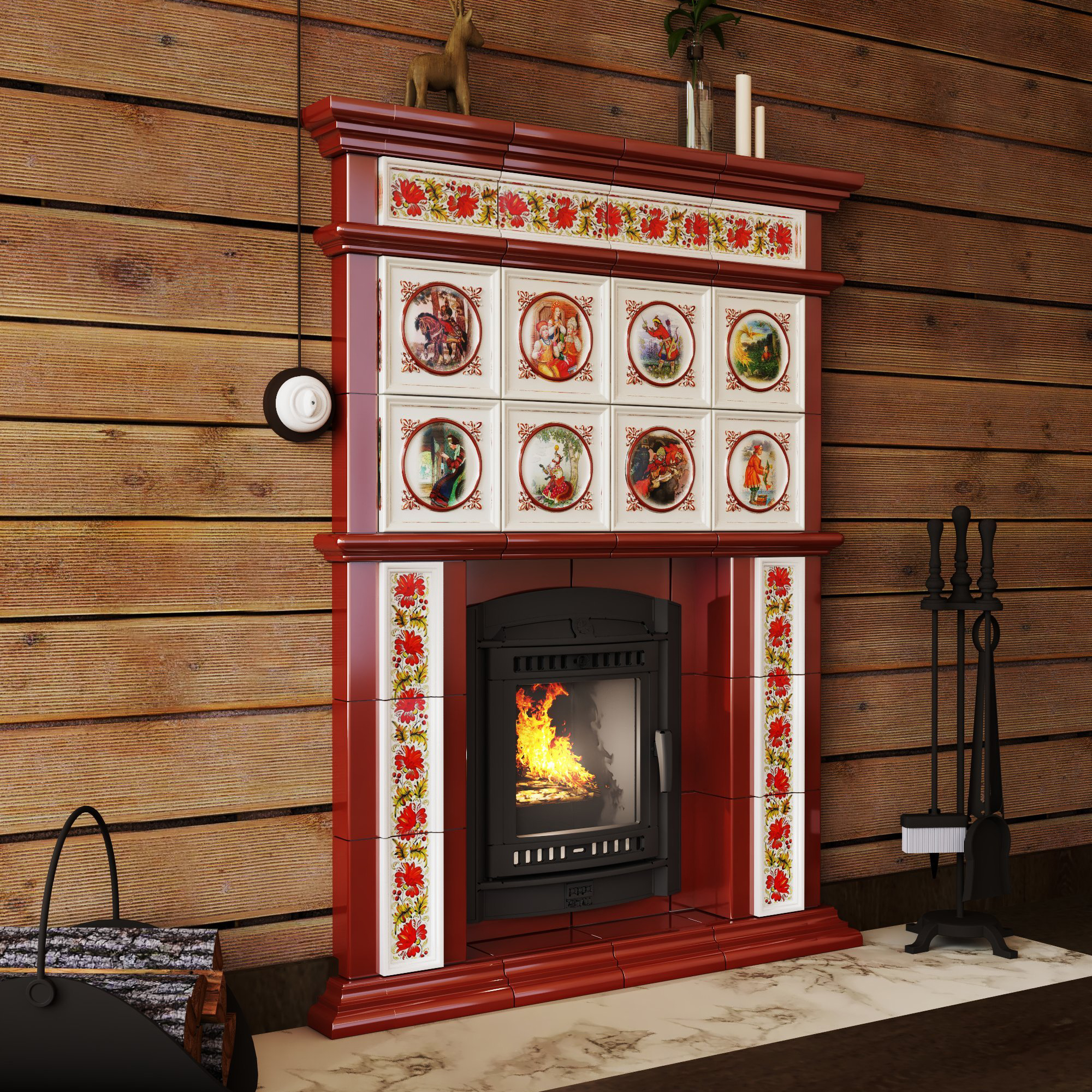 Камин в изразцовой облицовке "Сценки"