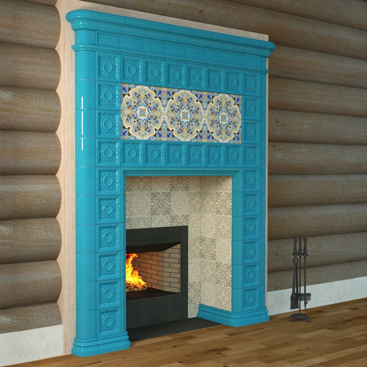 Камин в изразцовой облицовке "Византия"