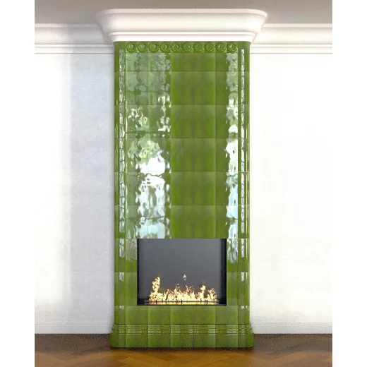 Камин с угловой топкой в изразцовой облицовке "Тюльпан"