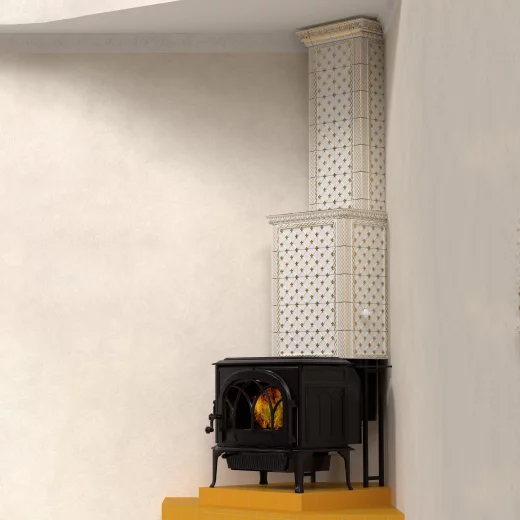 Проект облицовки дымохода для печи Jotul F 500 в коллекции Альбион с золотом