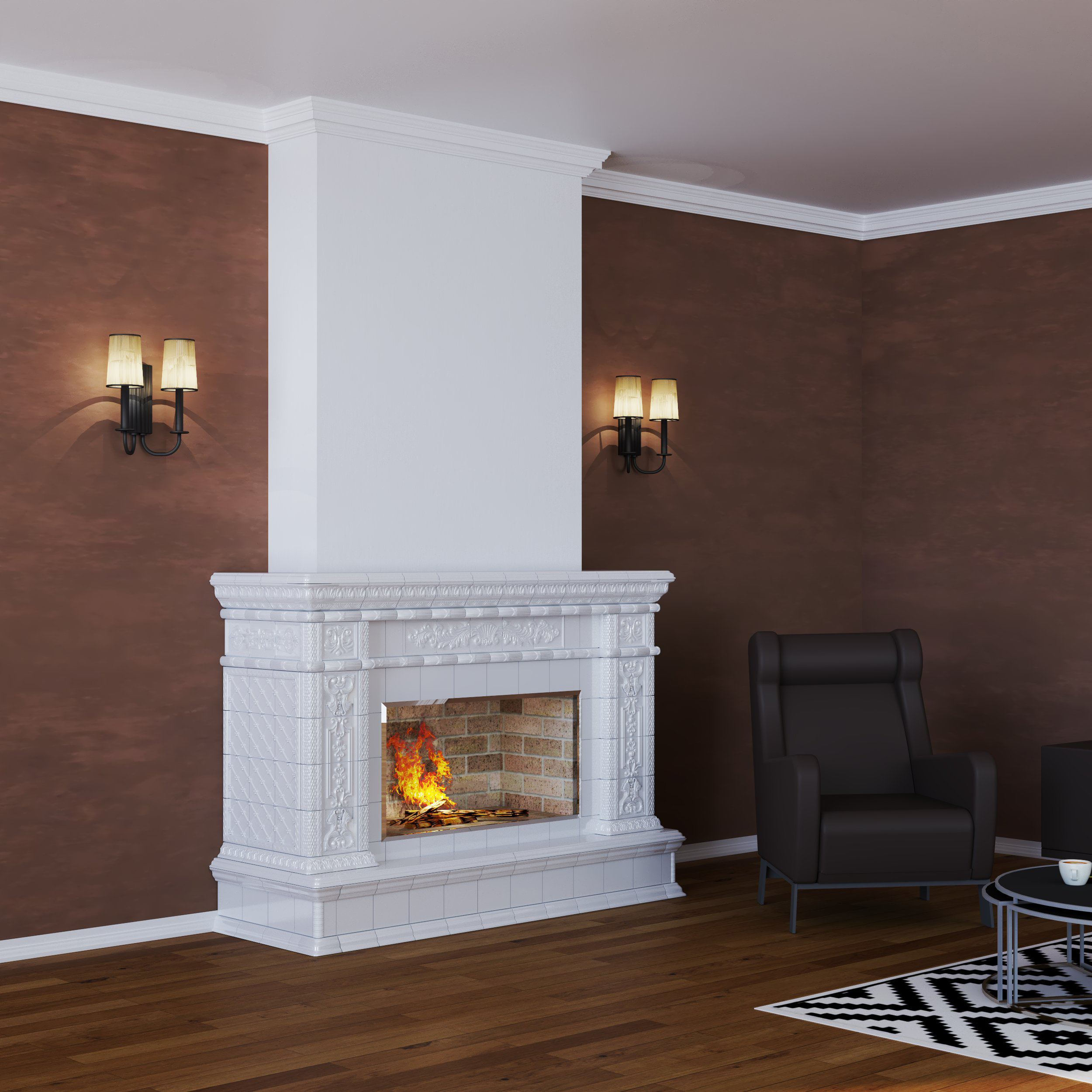 Камин с угловой топкой в изразцовой облицовке "Универсал"