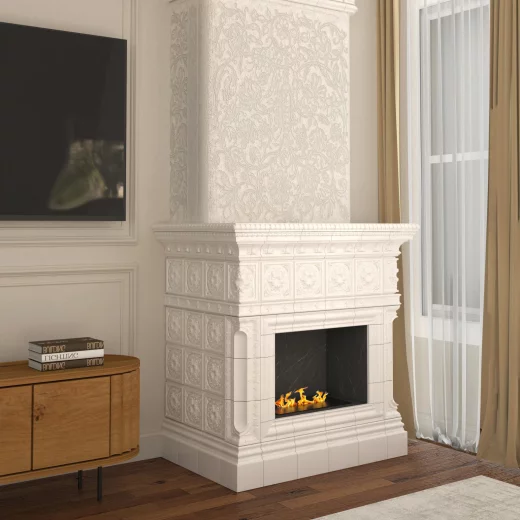 Камин с угловой топкой в изразцовой облицовке "Универсал"