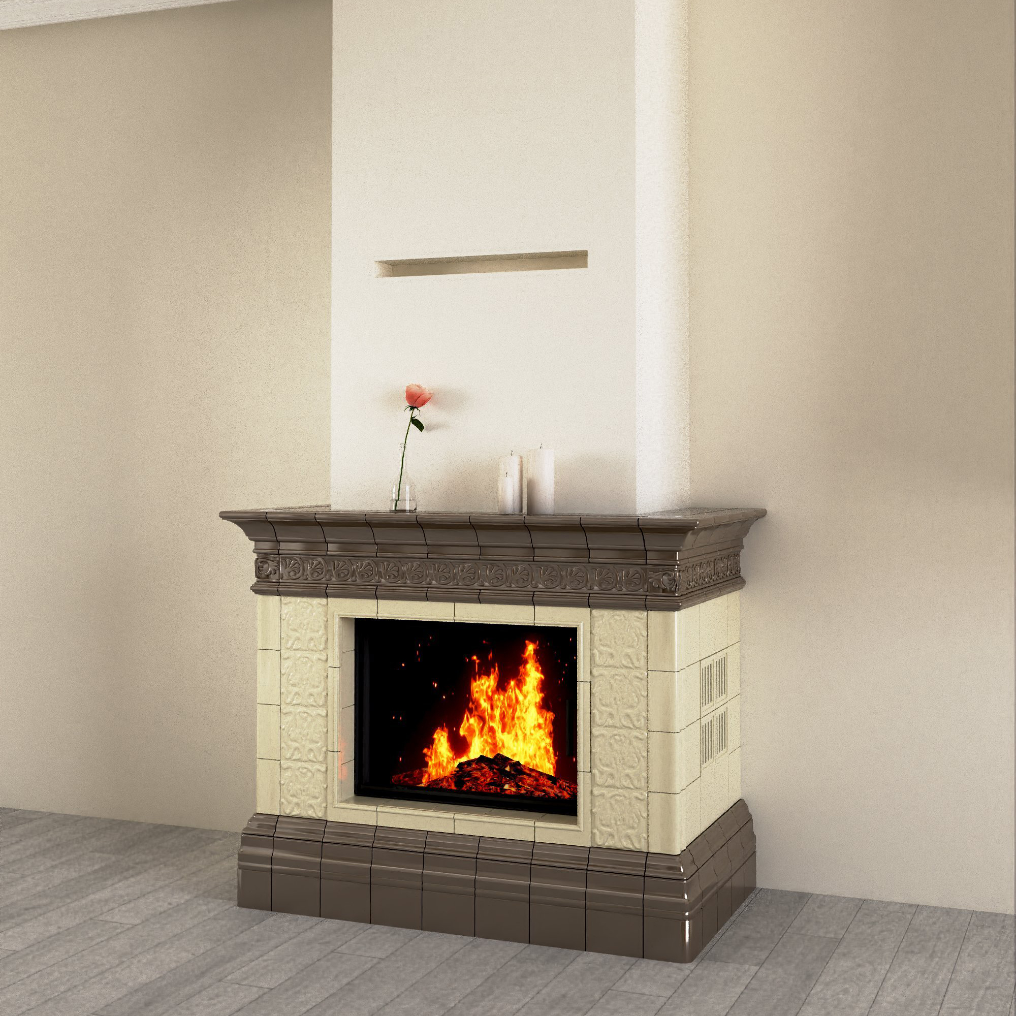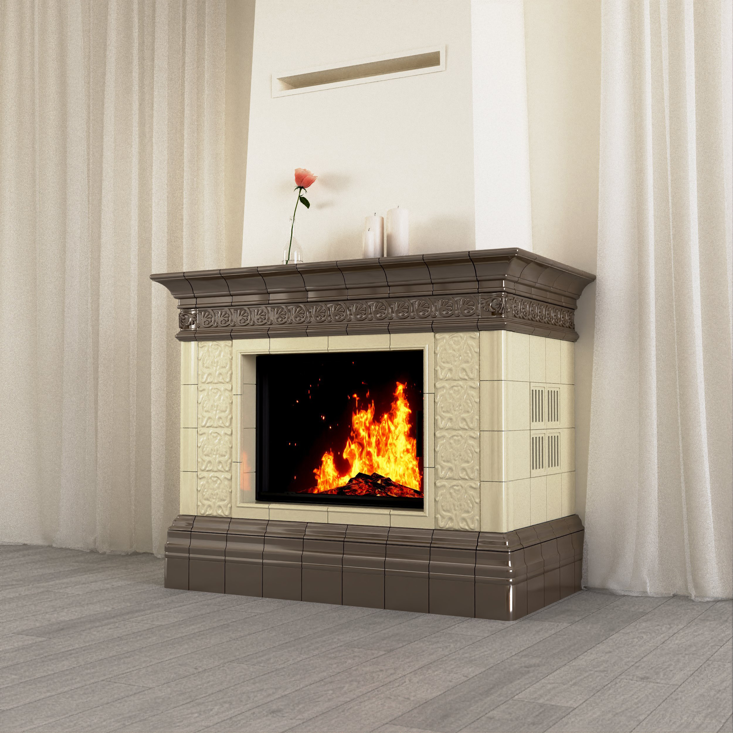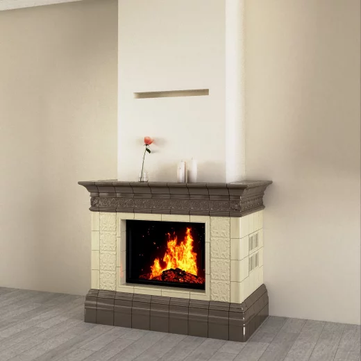 Камин в изразцовой облицовке "Арт Нуво" кофейный