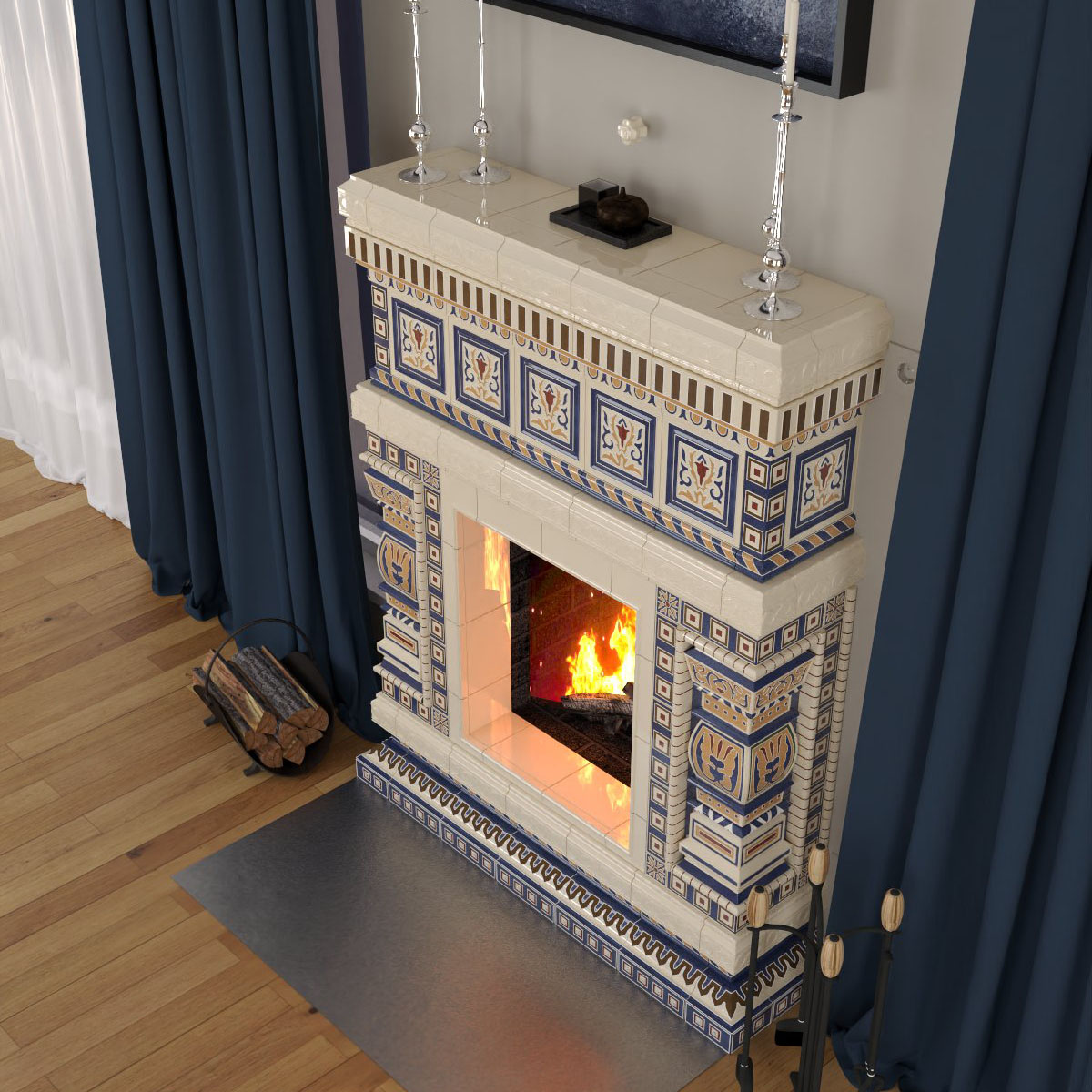 Камин в изразцовой облицовке "Византия"