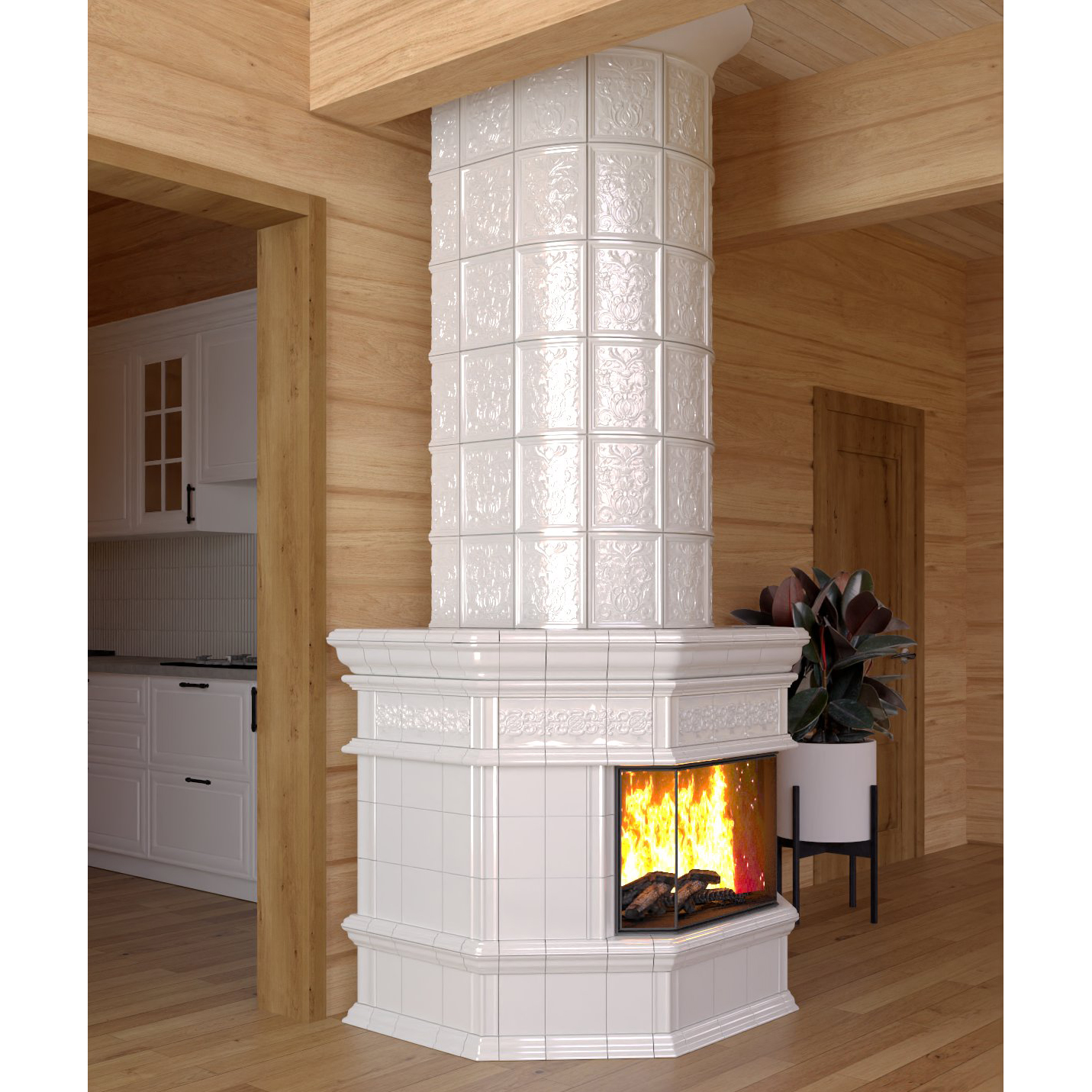 Камин с угловой топкой в изразцовой облицовке "Тюльпан"