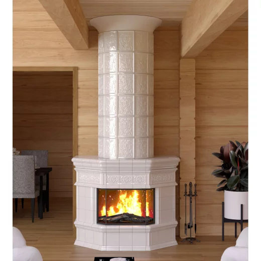 Камин с угловой топкой в изразцовой облицовке "Универсал"