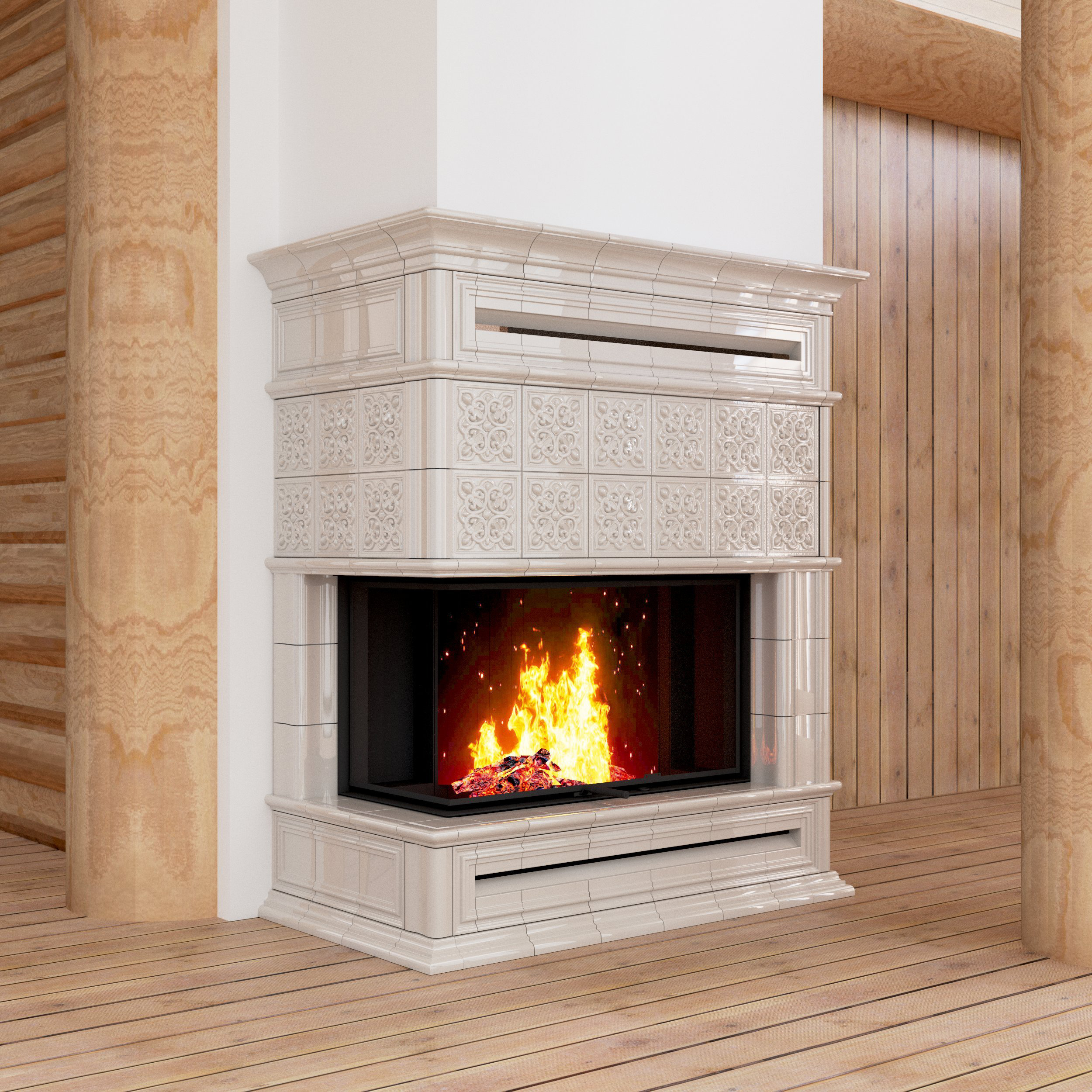 Камин с угловой топкой в изразцовой облицовке "Универсал"