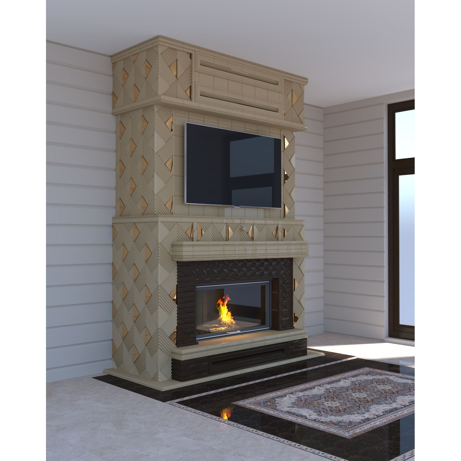 Подготовить проект облицовки камина в 2-х вариантах: 1. Маджестик. 2. Ар деко - беж с золотом. Использовать панно горизонтальное, плитку с сеткой, и т.д. Камин должен быть в нео классике.