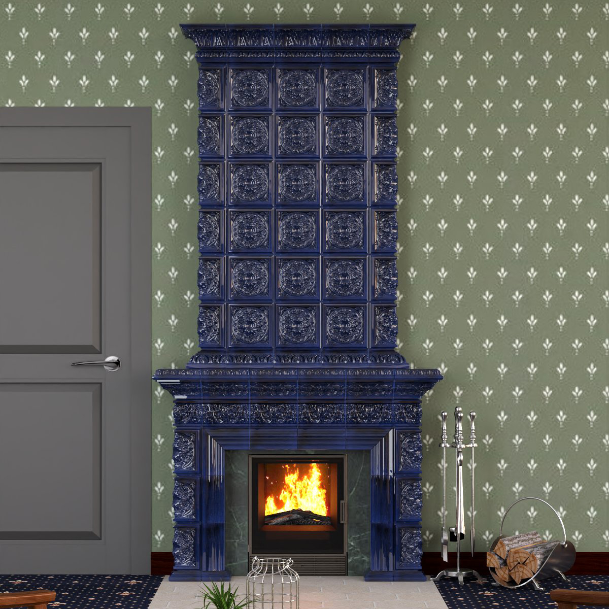 Камин в изразцовой облицовке "Тюльпан"