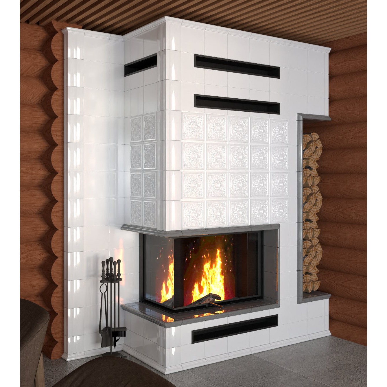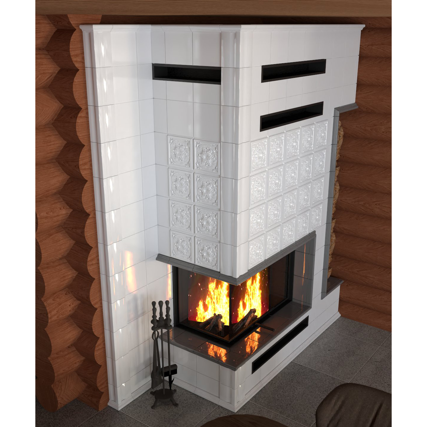 Камин с угловой топкой в изразцовой облицовке "Универсал"