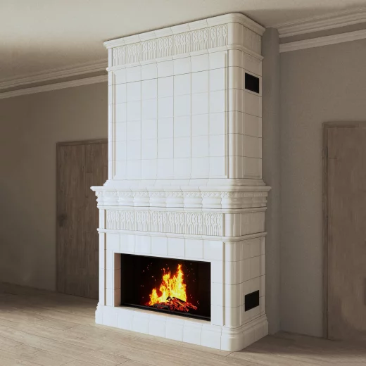 Проект облицовки каминной топки Астов ПС 12057 в белом цвете