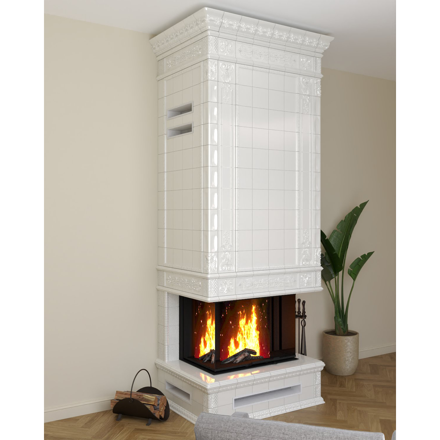 Камин с угловой топкой в изразцовой облицовке "Универсал"