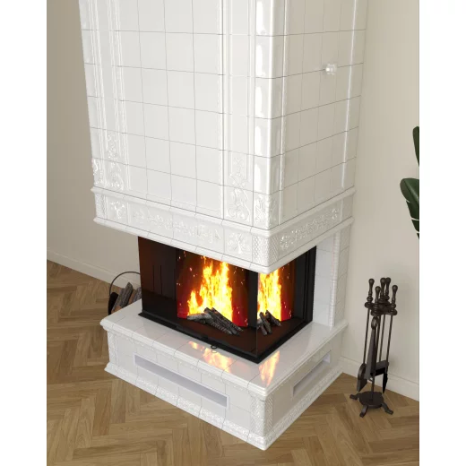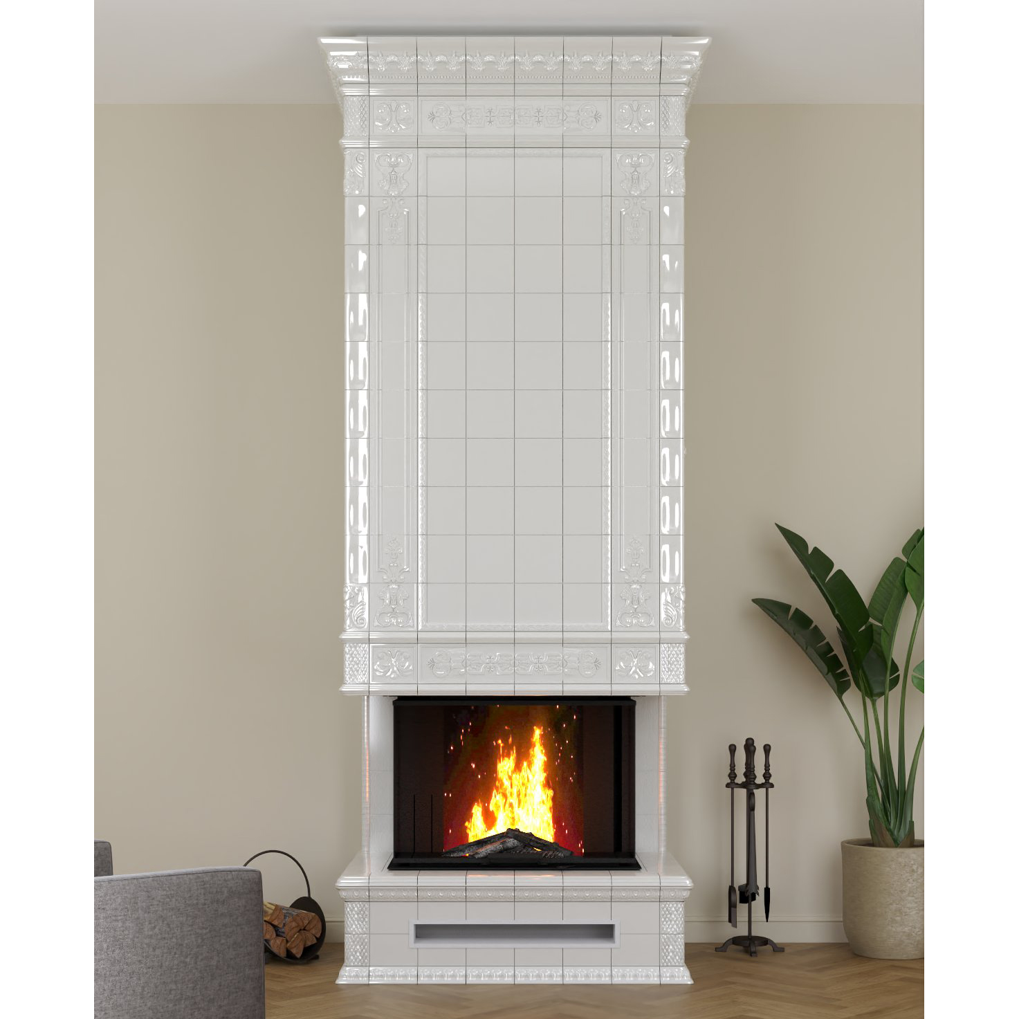 Камин с угловой топкой в изразцовой облицовке "Тюльпан"