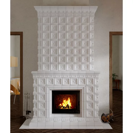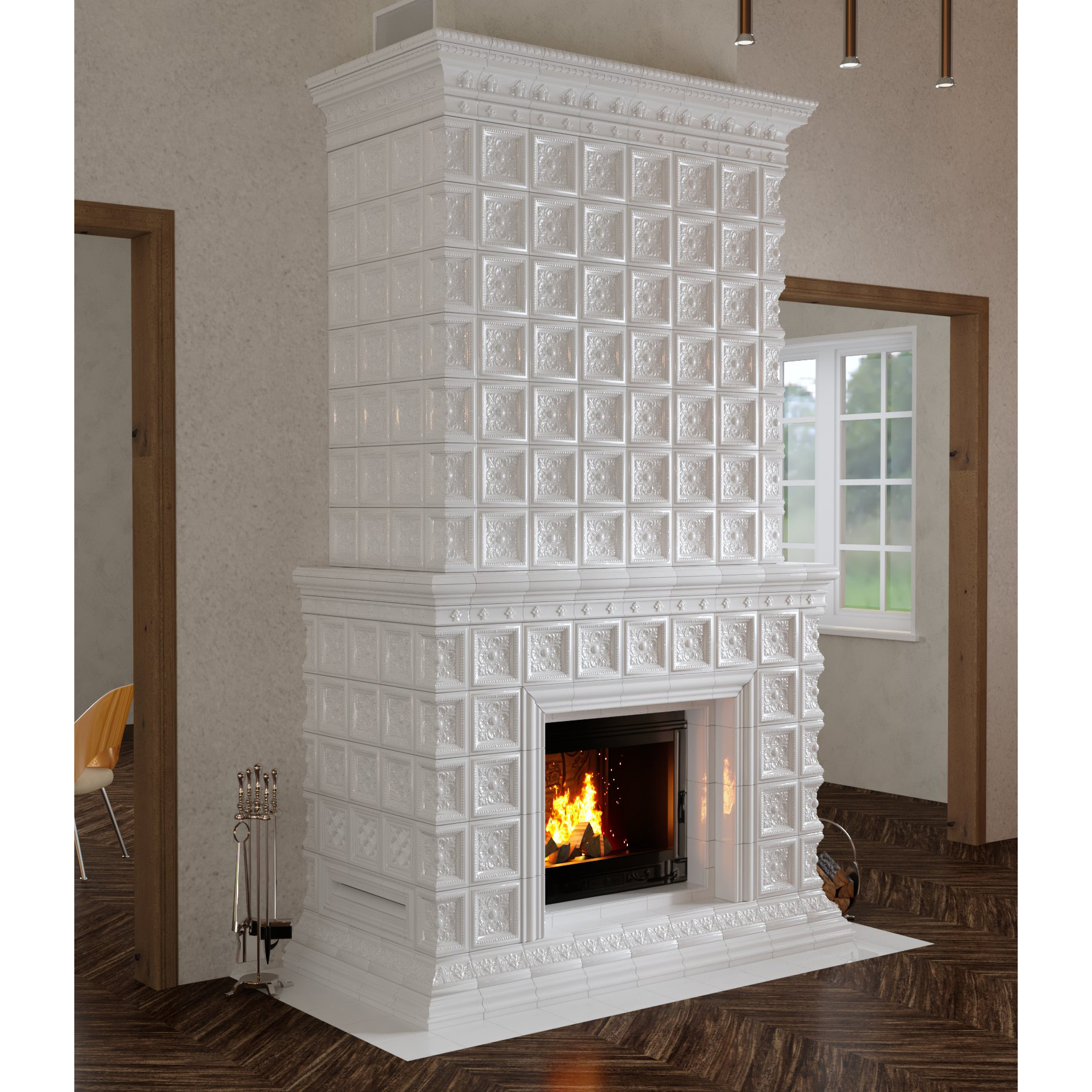 Проект облицовки каминной топки Supra 168 изразцами белого цвета