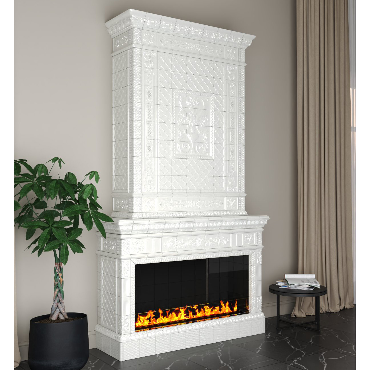 Камин с угловой топкой в изразцовой облицовке "Тюльпан"