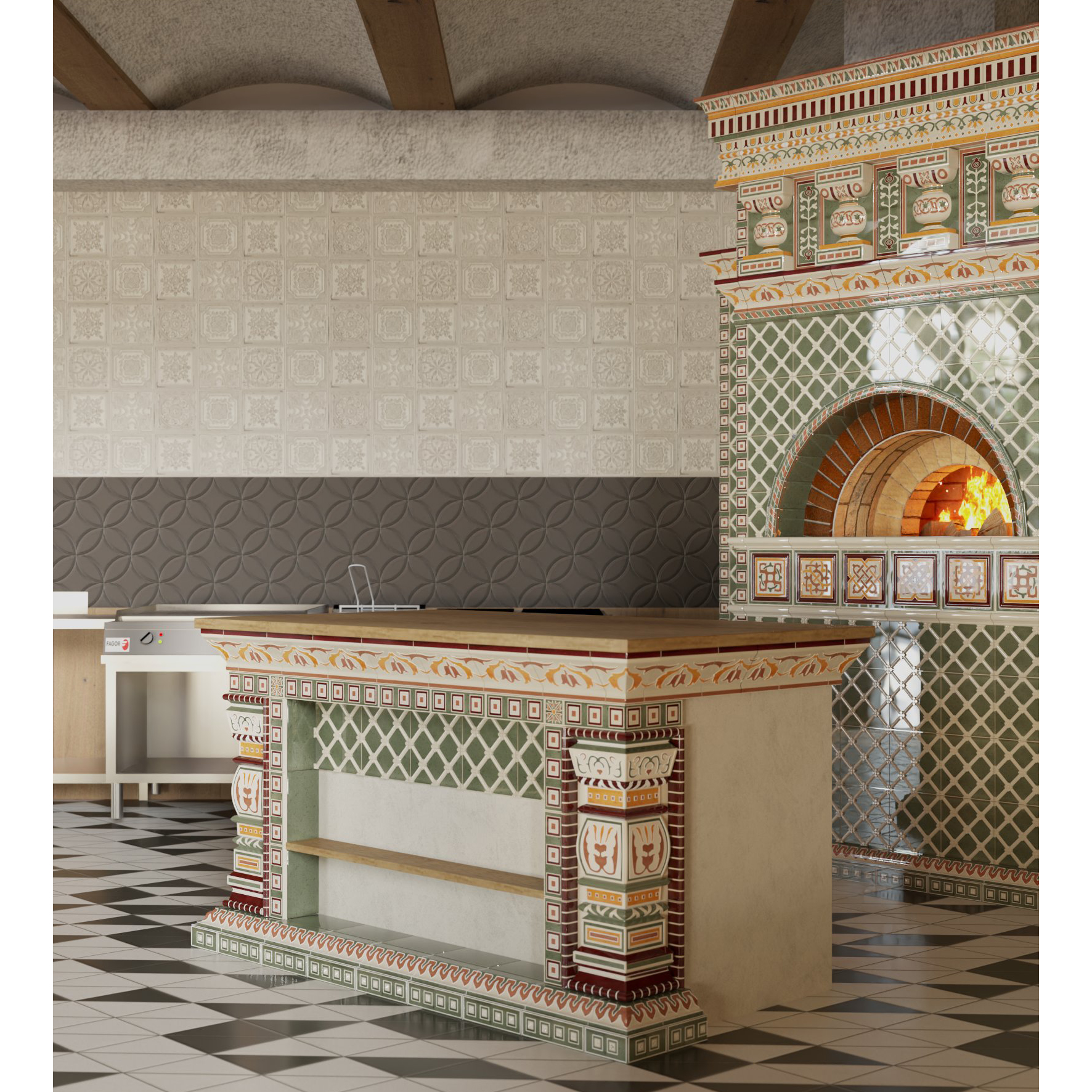 Кухонная стойка в изразцовой облицовке "Неаполь". Ресторан "Паста и баста", г. Москва.