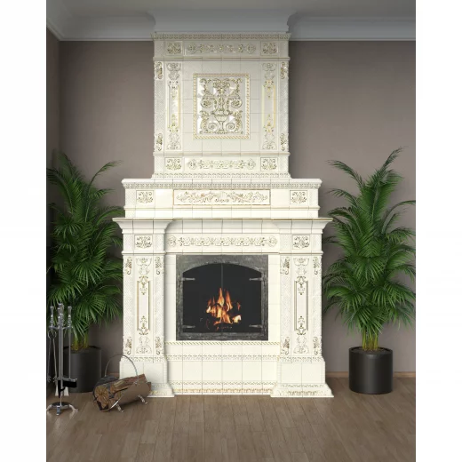 Камин в изразцовой облицовке "Альбион" с золочением