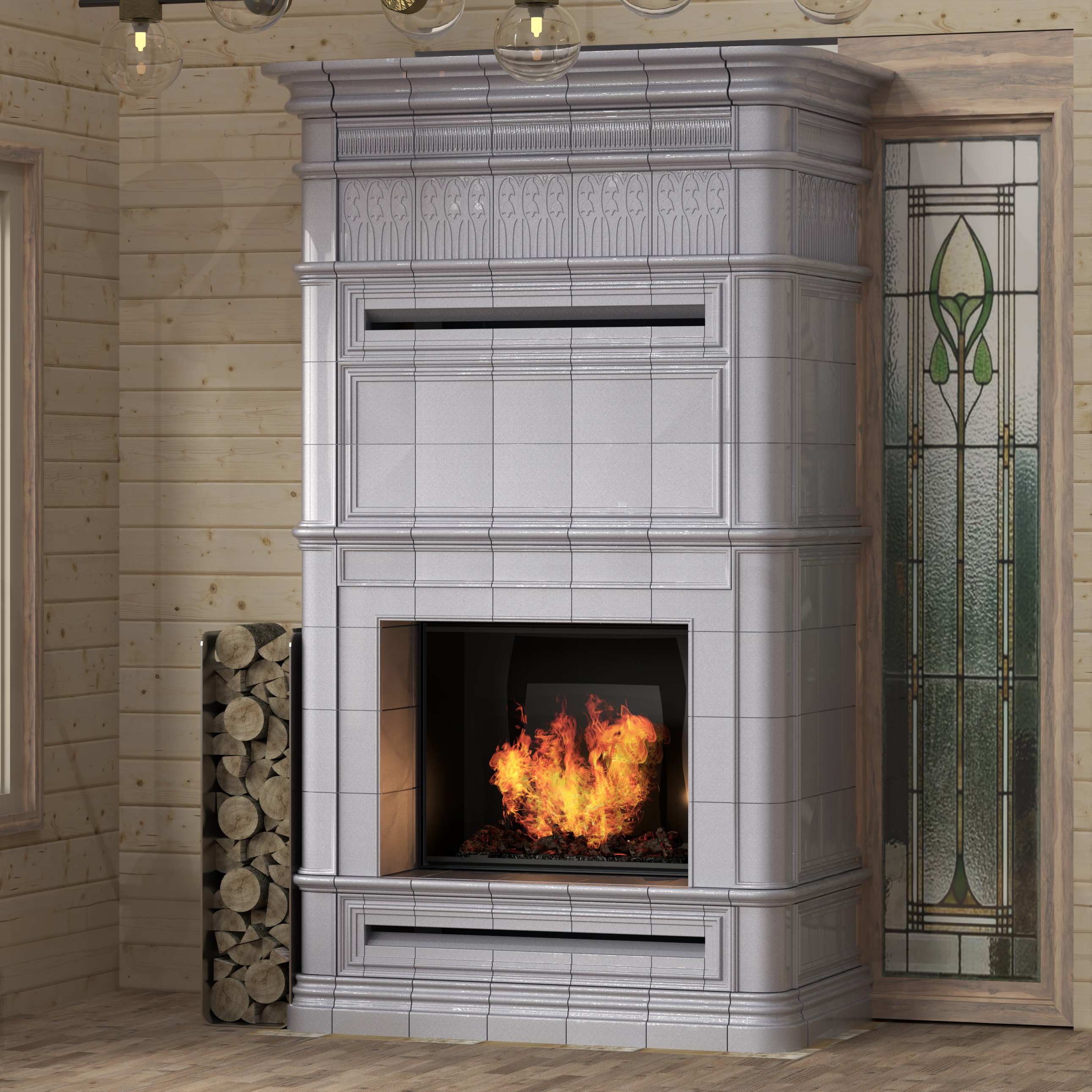 Камин с угловой топкой в изразцовой облицовке "Универсал"