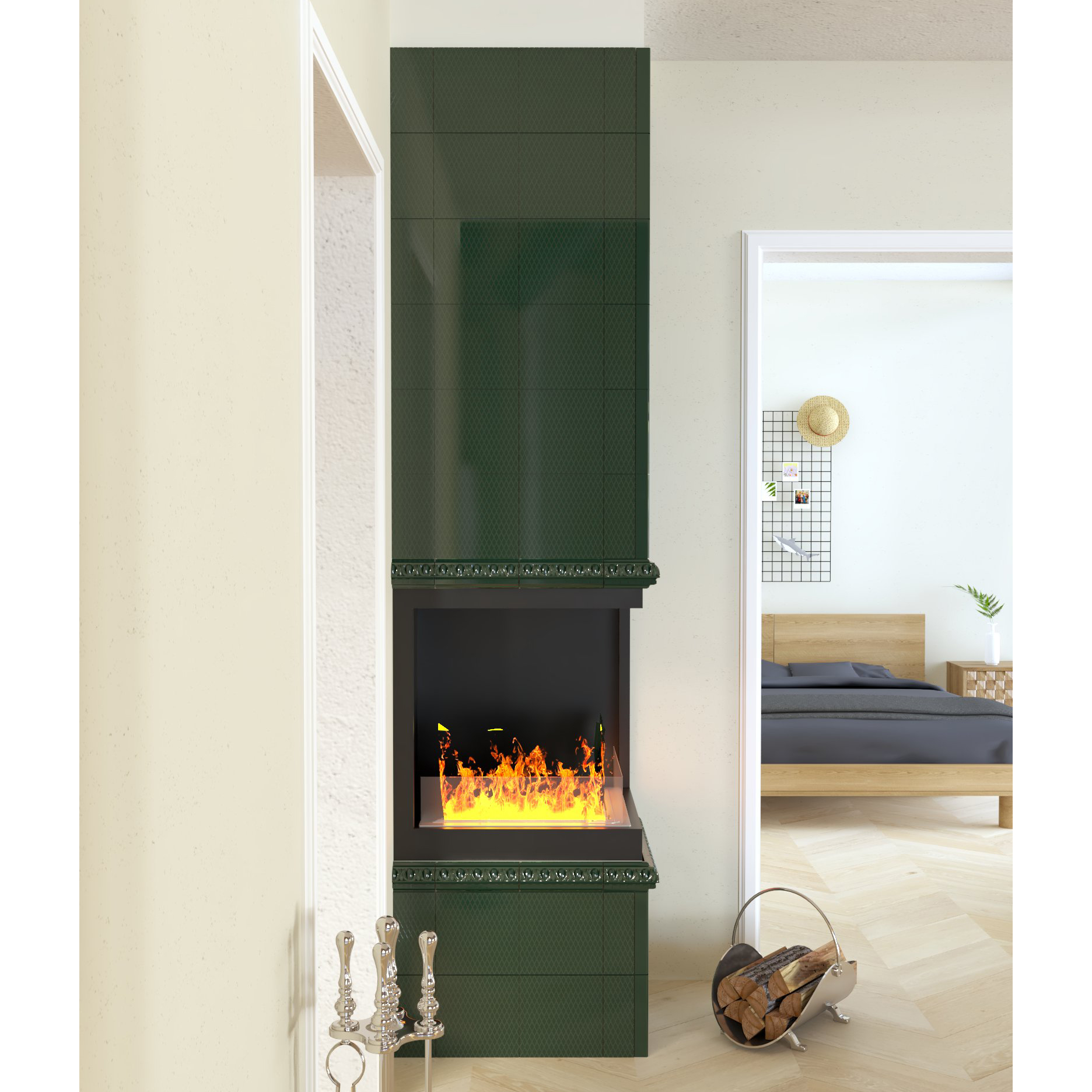 Электрокамин в изразцовой облицовке "Ар Деко".