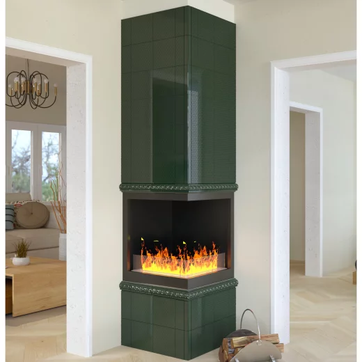 Камин с угловой топкой в изразцовой облицовке "Универсал"
