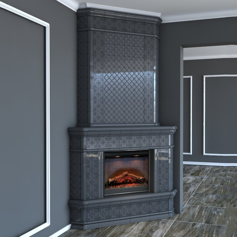 Проект облицовки углового камина в изразцами коллекции Элеганс