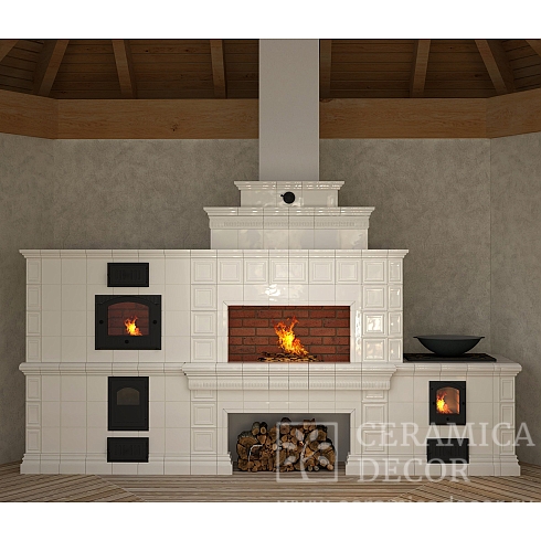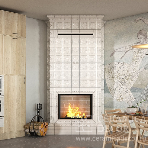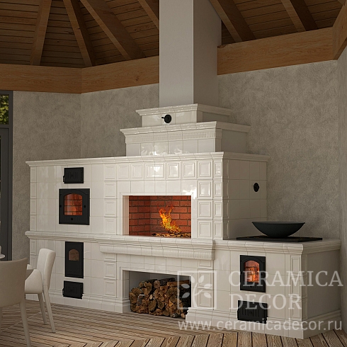 Подготовить проект частичной облицовки русской печи в белом цвете.