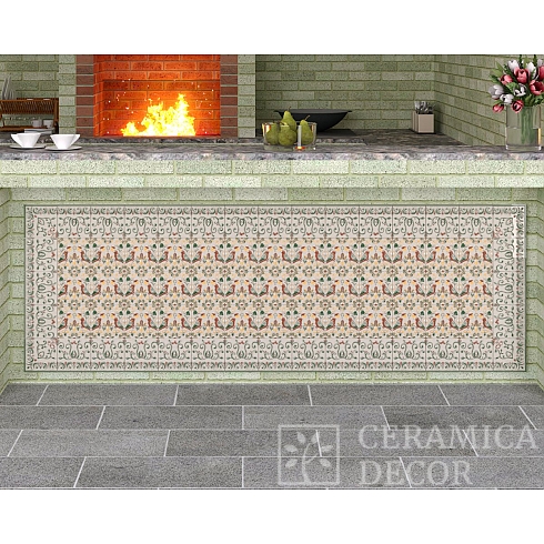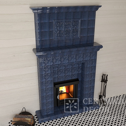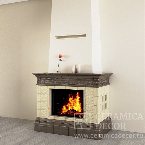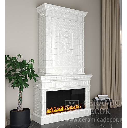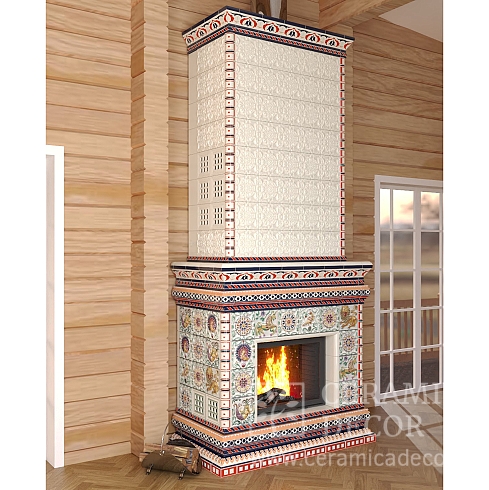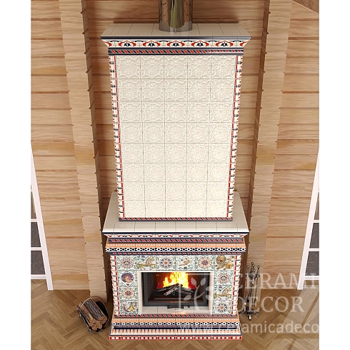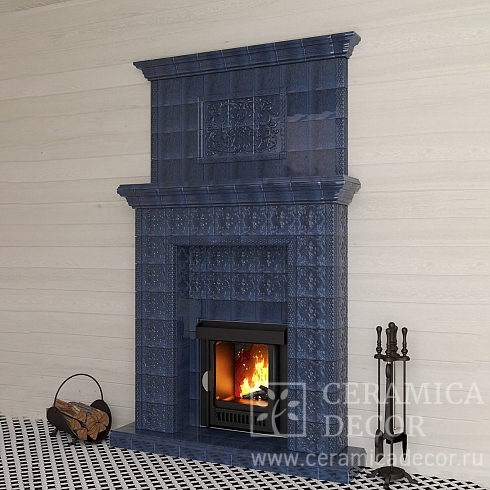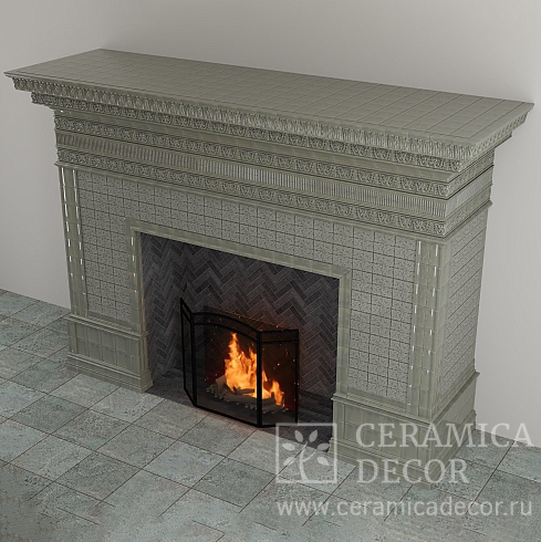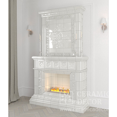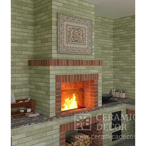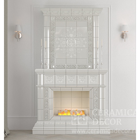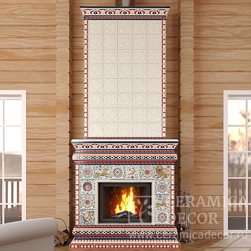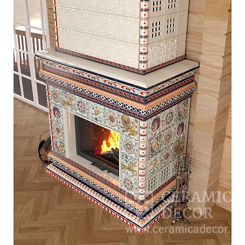 Подготовить проект облицовки камина до полки в майоликовой глазури.