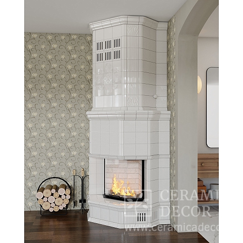 Подготовить проект облицовки углового камина в коллекции Тюльпан.
