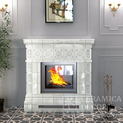Подготовить проект облицовки камина с дровником в белом цвете.