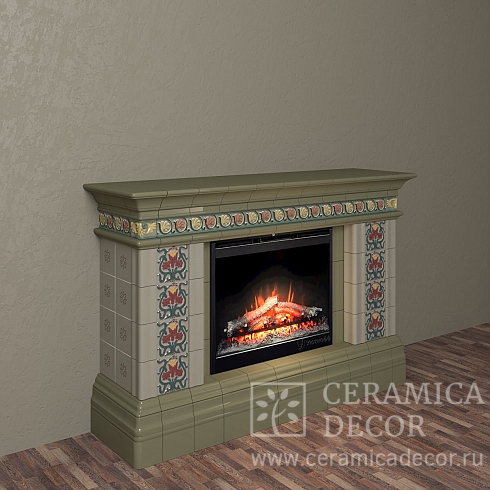 Подготовить проект облицовки камина в коллекции Арт-нуво цвет фисташковый.