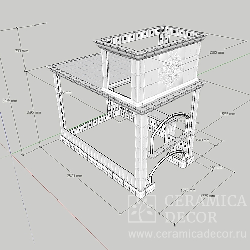 Разработать проект облицовки существующей печи в коллекции Брикс, согласно ТЗ. Спроектировать печь под казан.