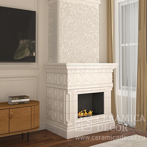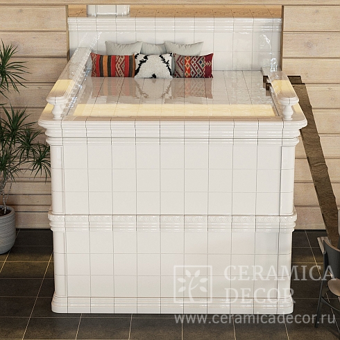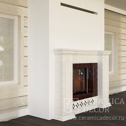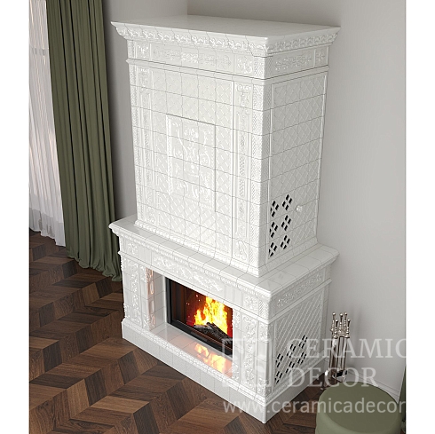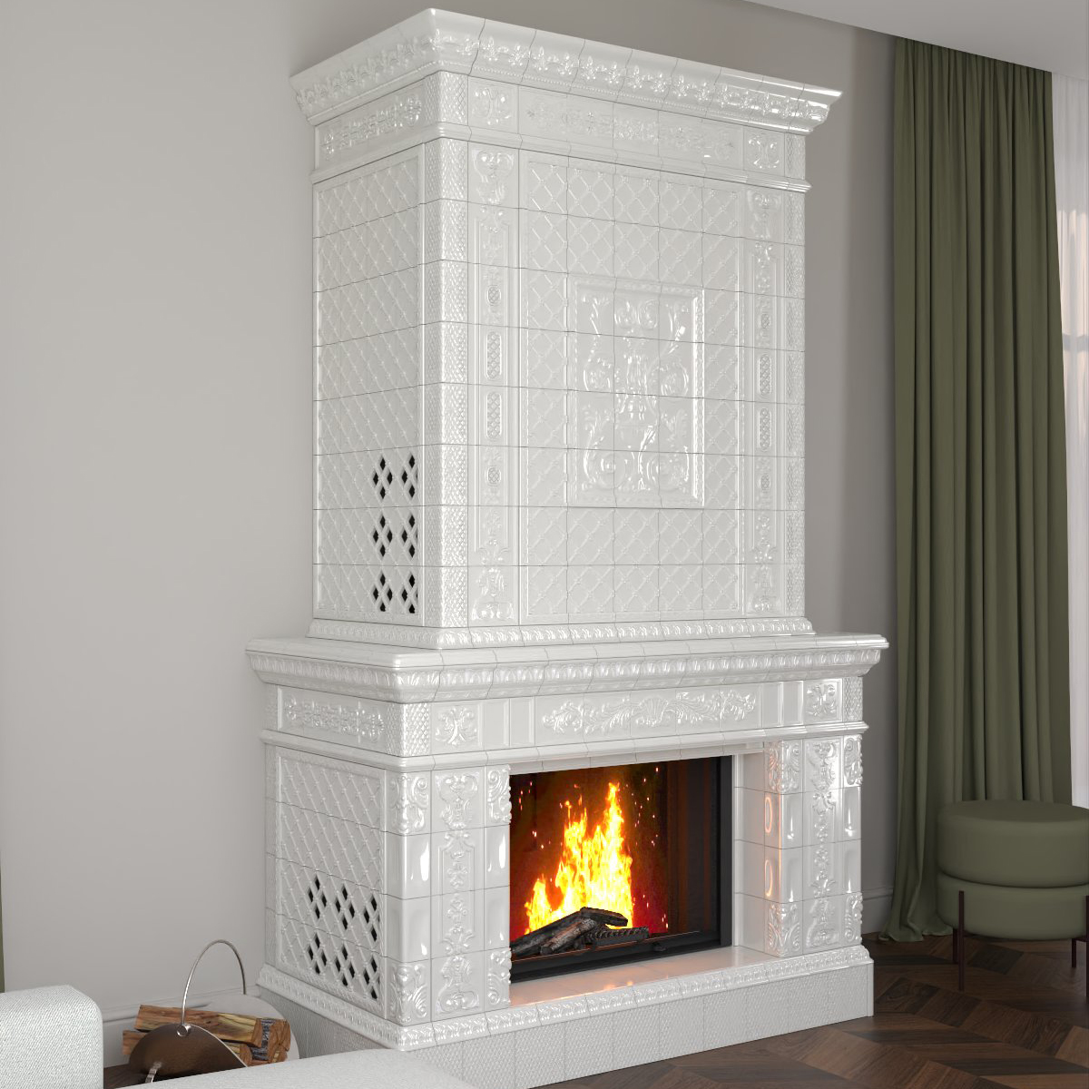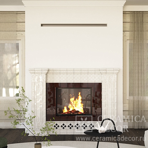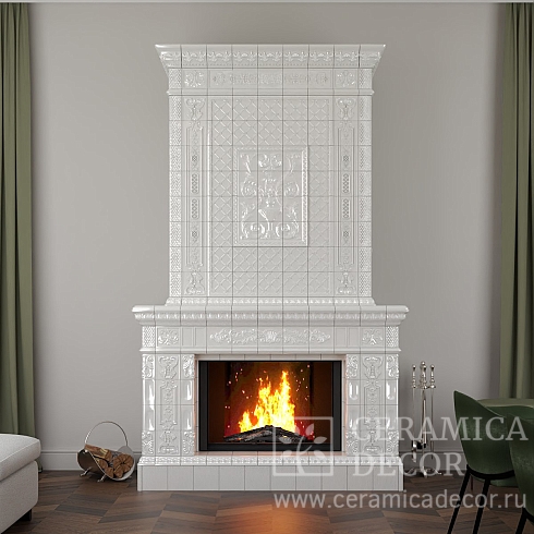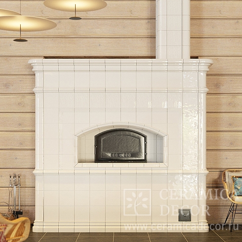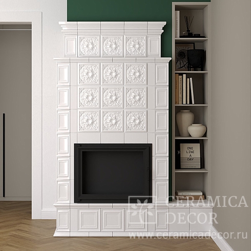 Подготовить проект облицовки каминной топки Астов ПС 8057 в белых изразцах.