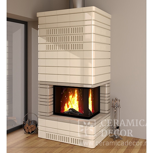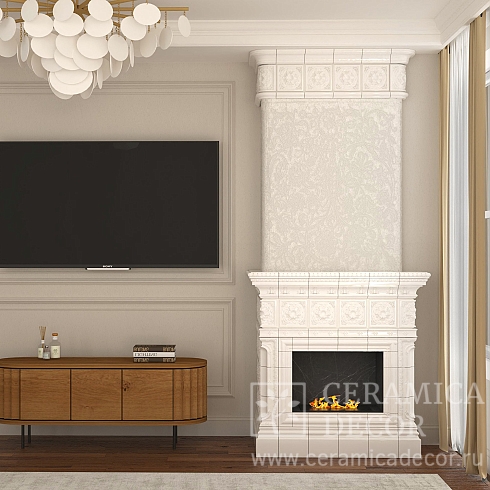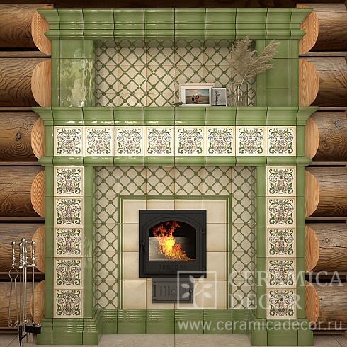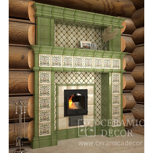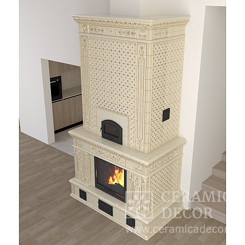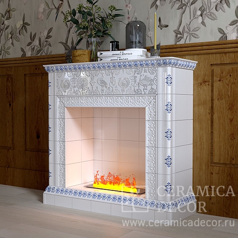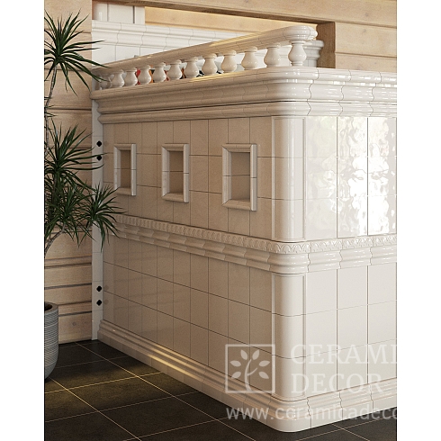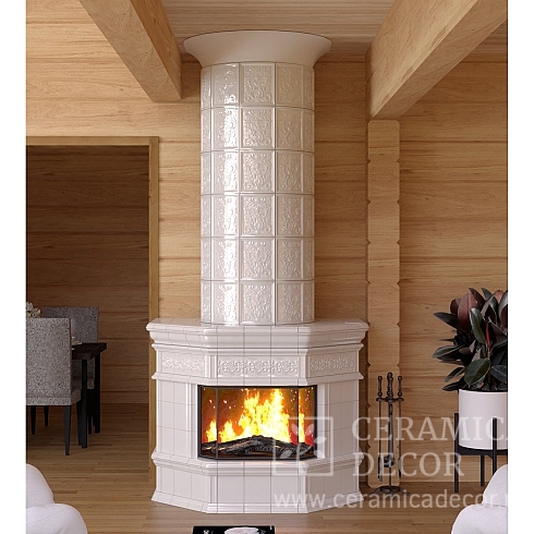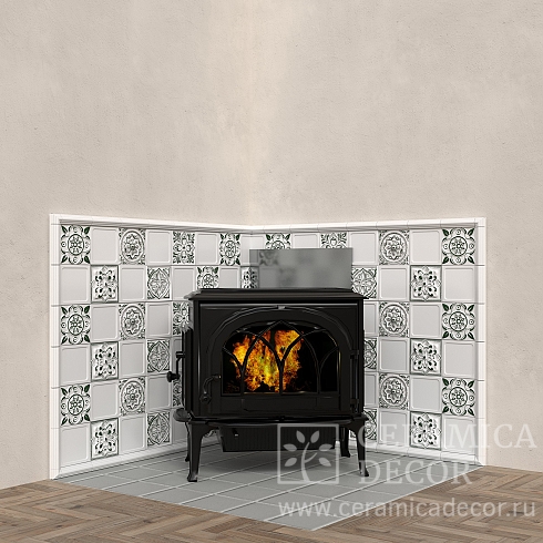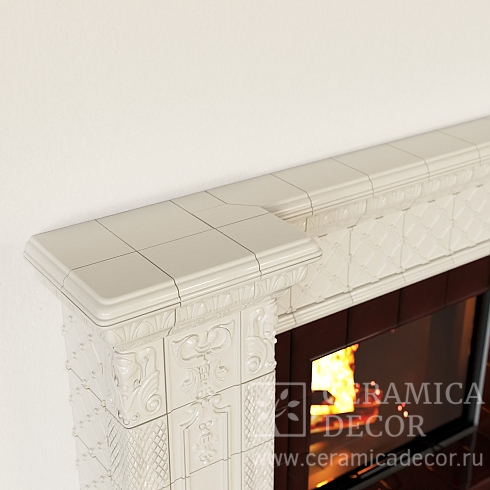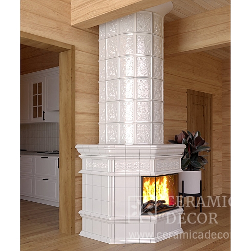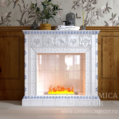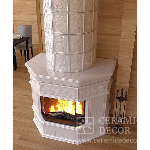 Подготовить проект облицовки каминной топки Астов ПС 8057 в белых изразцах.