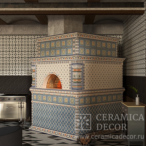 Подготовить проект облицовки кухонной печи для ресторана в коллекции Византия.