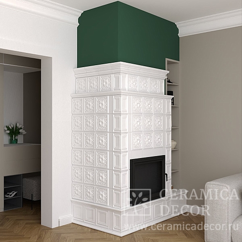 Подготовить проект облицовки русской печи в белом цвете коллекции Тюльпан.