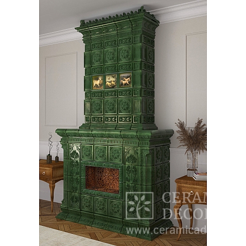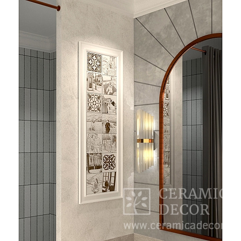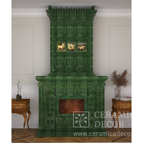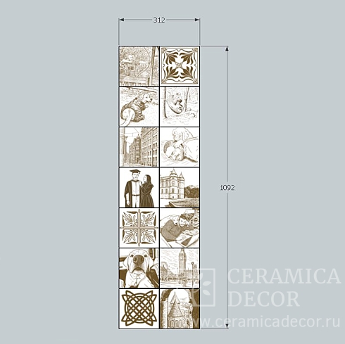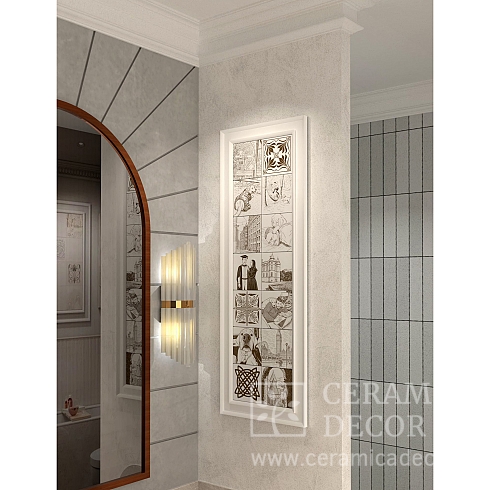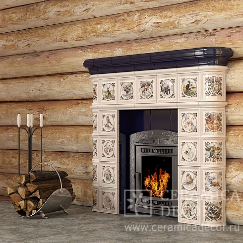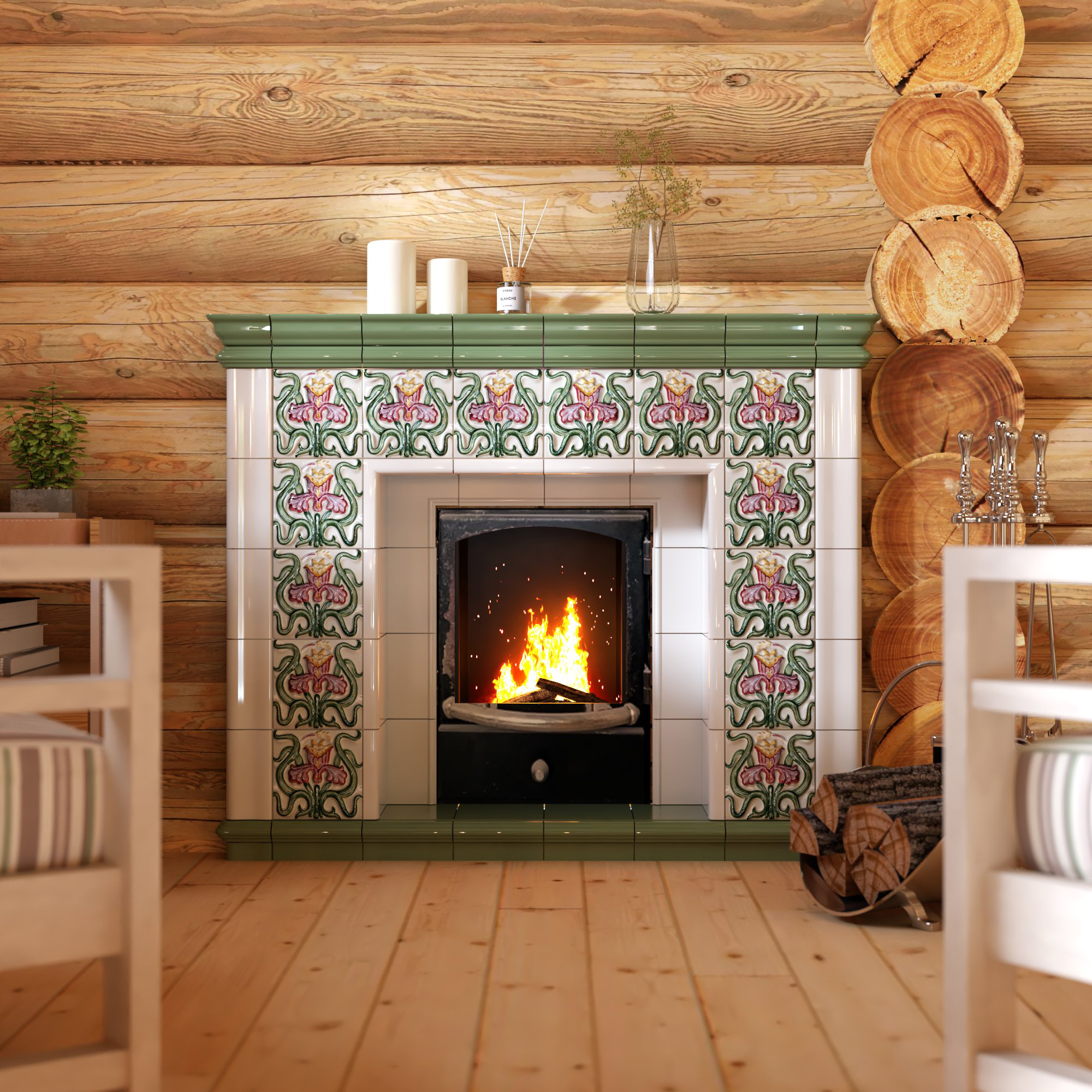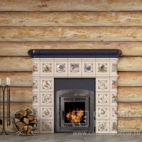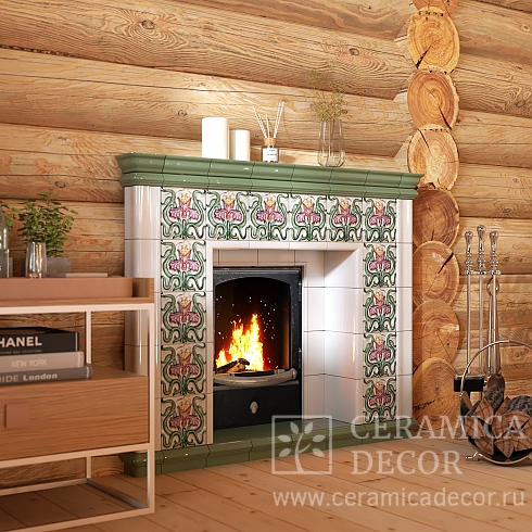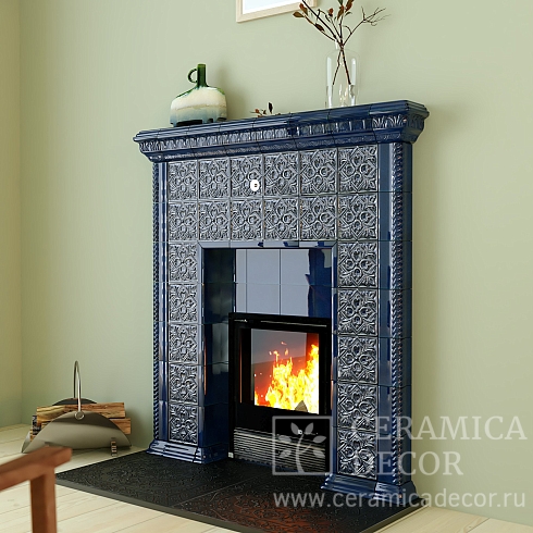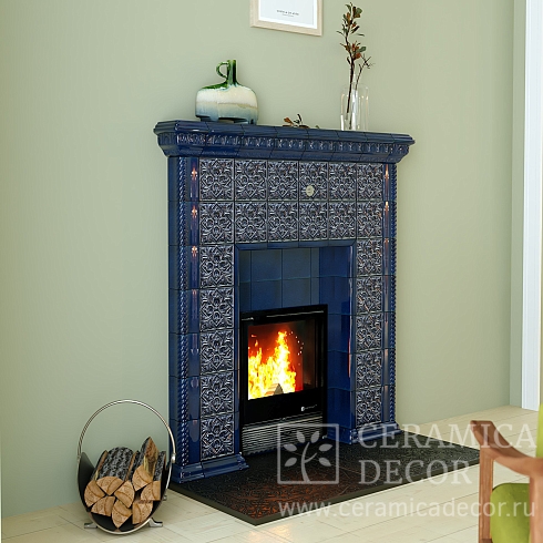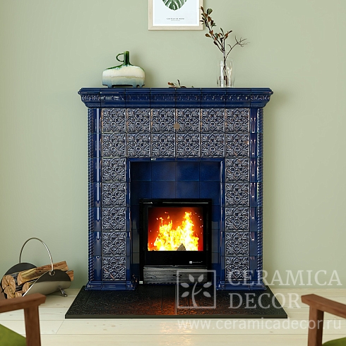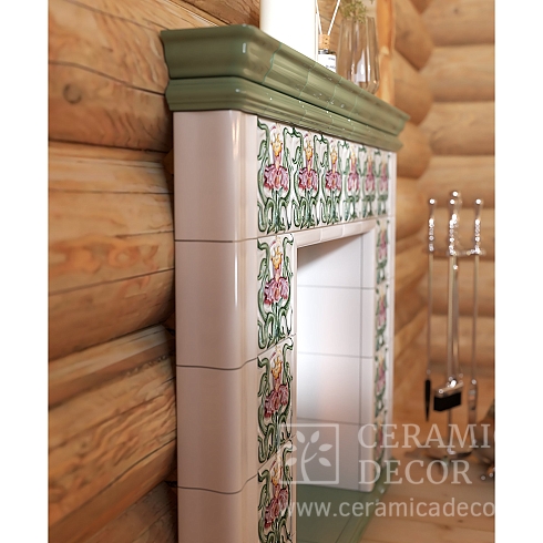 Подготовить проект облицовки фальш камина в коллекции Дорф с вставкой из плиток с индивидуальной росписью.