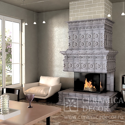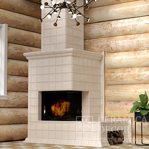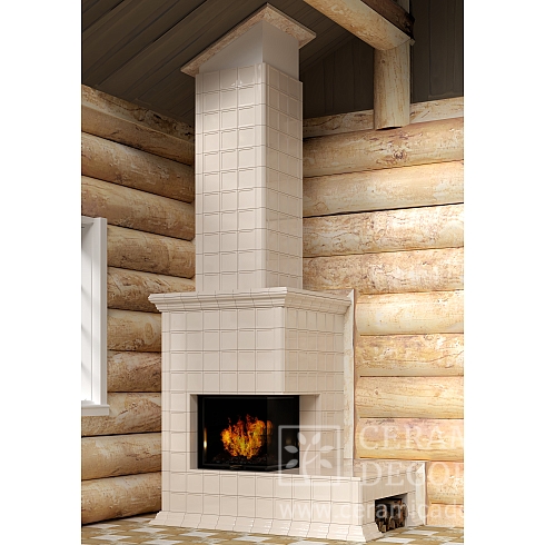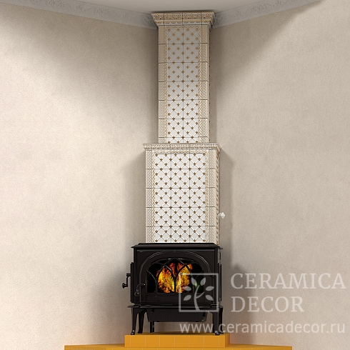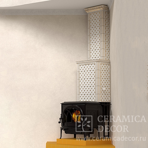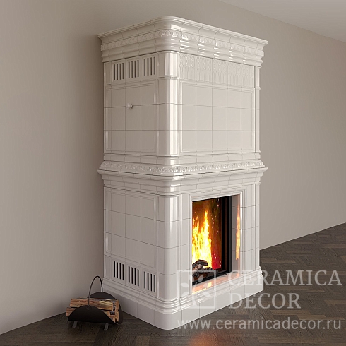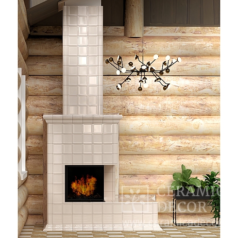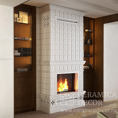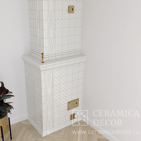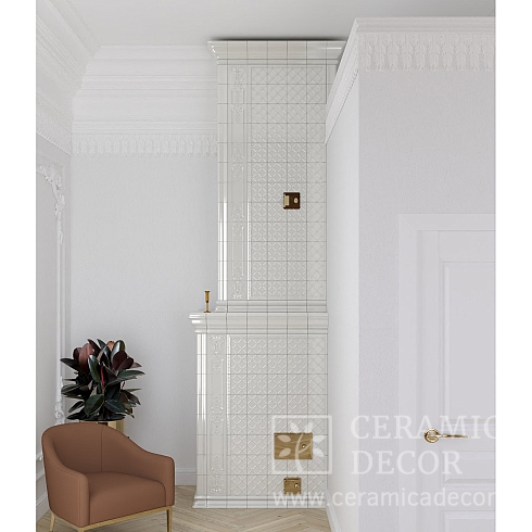 Подготовить проект облицовки декоротивной печи в спальне в белых изразцах коллекции Альбион.