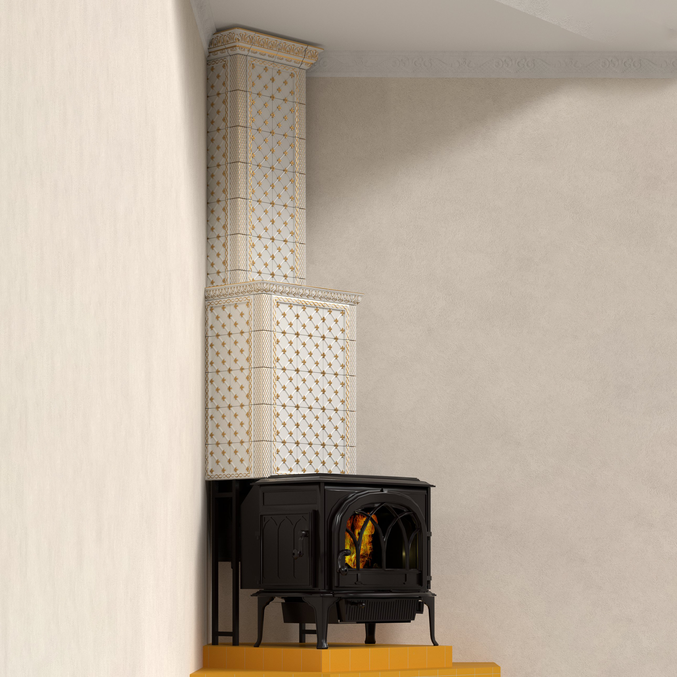 Подготовить проект облицовки дымохода для печи Jotul F 500 в коллекции Альбион с золотом.